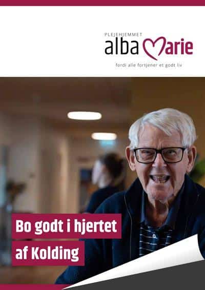 Vi glæder os til at se dig på Friplejehjemmet Alba Marie i Kolding. Her er der plads til 80 beboere i alt, fordelt i 5 grupper, der hver kan huse 16 beboere. Alba Marie er et moderne og bæredygtigt plejehjem med hyggelig gårdhave og plads til det gode liv. Vi er et privat plejehjem, der skaber rolige omgivelser med nærvær og omsorg for ældre.